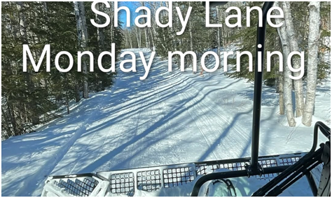 The trails are just starting to get back to normal. I was speaking with Jacob on the #3 out of Rogers Lake and he claims that the trails that weren’t groomed since Saturday were quite moguled and he assured me that once he is done with his grooming schedule that they will be smooth. He was out to 509 and Shady Lane then back to Rogers lake to change the oil in the final drives on that groomer. Once he was done he was onto Trail 23 to Red Pine Shelter up the 507, 22 North to the turn around, Back on 22 South as far as the 508 into the Forty Cluster and back to Rogers Lake. Francois who was back after a lengthy time off for medical reasons had his first run from Nepisiguit on Trail 23 to Rogers Lake and back