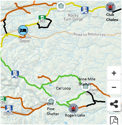 Hier, nous avons sorti la dameuse de Rogers Lake et avons fait la boucle Cal et le sentier 22 en direction de la section Chaleur du 22 et comme Chaleur damera sa section vendredi, cela signifie que le sentier de Rogers Lake au Club Chaleur a encore une partie praticable.